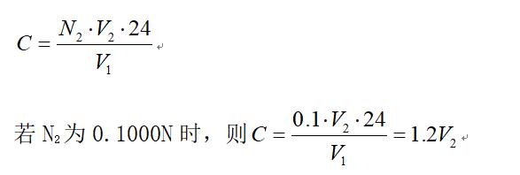 式中: N2、V2―Na2S2O3的當(dāng)量濃度(0.1000N)和滴定用量(ml)