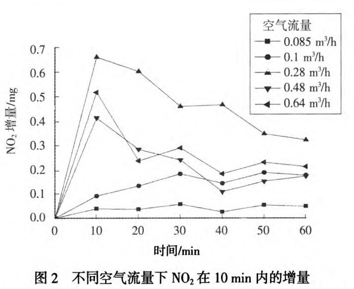 2.1不同空氣流量下NO2的產量隨時間的變化