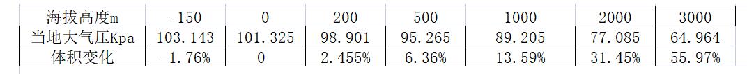 設(shè)定溫度為 0℃不變,且忽略緯度的影響,一定質(zhì)量的氣體體積將隨海拔高程——當(dāng)?shù)卮髿鈮鹤兓儯渥兓咳绫?C.3 所示。