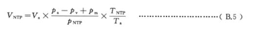 B.2.6.1 溫度壓力修正后的氣體體積計(jì)算式為式(B.5)。